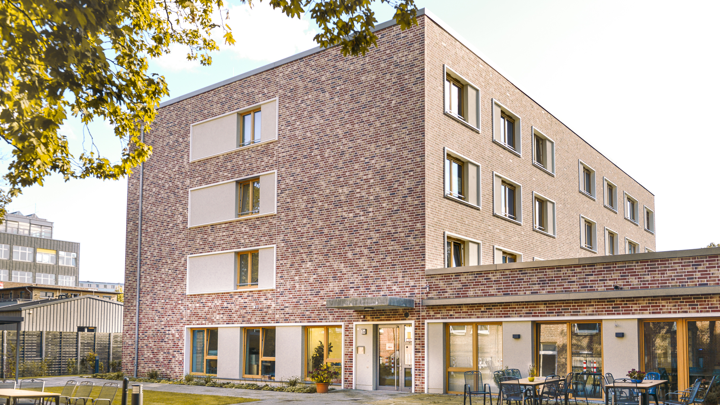 Das Quartier an der August-Krogmann-Straße in Hamburg-Farmsen hat eine lange Geschichte und steckt voller Innovation. Wo sich einst das streng umzäunte „Versorgungsheim“ befand, leben heute Menschen aus aller Welt und jeden Alters, mit und ohne Behinderung, zur Miete oder in Wohngruppen, FSJler:innen und Auszubildende. F&W saniert das denkmalgeschützte Gebäude-Ensemble und erweitert es um Neubauten.