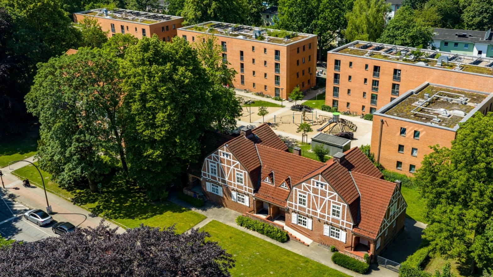 Vielfältige Angebote für Menschen mit psychischer Erkrankung und Pflegebedürftige entstanden auf dem Gelände bereits in den 1960ern. Ein Pflegeheim und eine Kindertagesstätte befinden sich heute ebenso auf dem Gelände wie Mietwohnungen der städtischen Wohnungsgesellschaft SAGA. Angebote anderer sozialer Träger, Schulen, Läden, Freizeitangebote und Sportvereine finden die Bewohner:innen in der Nähe. Mit Bus und U-Bahn erreicht man das Quartier schnell.