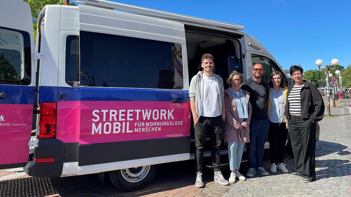 Für Obdachlose auf Hamburgs Straßen unterwegs: Aufsuchende Straßen-Sozialarbeiter:innen unterstützen direkt dort, wo sich obdachlose Menschen aufhalten. Seit kurzem ergänzt das von der Sozialbehörde finanzierte „Streetwork-Mobil“ das Beratungsangebot. Nach dem Abschluss der Testphase ist ein Team mit dem Fahrzeug werktags im Hamburger Stadtgebiet im Einsatz.
